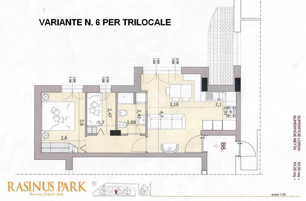 - superficie netta: mq. 43;